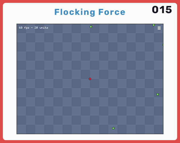 Extremely Optimized Flocking Algorithm - from 60 fps at 1,400 Area2D nodes, into 60 fps at 3,000 Area2D nodes - from 60 fps at 2,800 PhysicsServer units, into 60 fps at 6,300 PhysicsServer units [Nov 07, 2023] 3h - Sprite based on Velocity review [Nov 08, 2023] 9h - Learning Godot Navigation (Agents / Server) [Nov 09, 2023] 9h - More Optimized Flocking [Nov 10, 2023] 4h - Circle Nestling Math [Nov 12, 2023] 9h - Boid Flocking (Extreme Optimization) [Nov 13, 2023] 7h - Flocking Force Application [Nov 14, 2023] 5h - Boid Flocking Project Upload