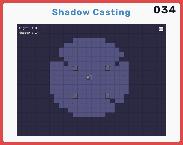 [Jun 02] 2h - ShadowCasting Research [Jun 03] 4h - RogueBasin Study [Jun 04] 3h - Code Organize [Jun 05] 5h - TileMapLayer Review [Jun 06] 7h - TileMapLayer Helper [Jun 07] 5h - TileMapLayer Helper [Jun 08] 5h - ShadowCast New [Jun 10] 7h - Wall Collisions [Jun 11] 6h - Resolutions [Jun 12] 9h - Pixel Dungeon Review