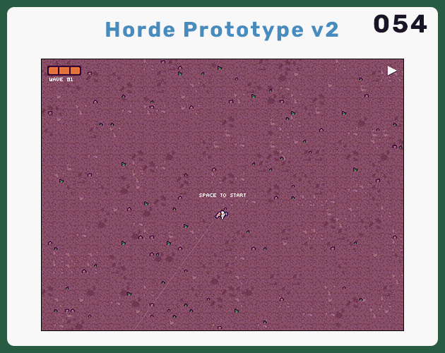 # got hit by burnout, had to slog through # playing some Balatro to recharge # LESSON: using sprite packs burns me out # again, it's detrimental to focus on art too early # it creates a disconnect, like it's not your game [Mar 11] 07h - Sprite Rotations [Mar 12] 02h - Player [Mar 13] 02h - Level [Mar 16] 05h - Enemies [Mar 17] 05h - Health [Mar 18] 06h - Collisions [Mar 19] 07h - Query [Mar 22] 02h - Interface [Mar 23] 02h - Death [Mar 24] 04h - Interface [Mar 25] 06h - Interface [Mar 26] 05h - Final
