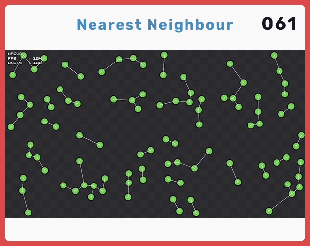 [Jun 04] 03h - Naive [Jun 05] 07h - Sort Algorithms [Jun 06] 13h - Heap Sort [Jun 09] 03h - Kd Tree [Jun 10] 07h - Kd Tree Array [Jun 11] 04h - Quicksort [Jul 07] 03h - Upload * life happened * build tree to avoid checking each unit * good when you don't need to build tree often