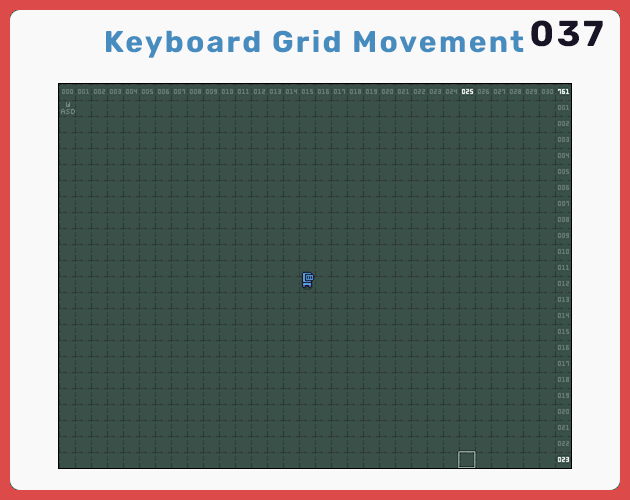 # last press priority (opposite directions) # long press delay (one tap one tile) (diagonals) # quick taps (no delay on taps) # one-two tap (one-two or diagonal) # one-two hold (one before two hold) # long press side tap (on hold, one side tap) [Aug 05] 08h - Pixel Fonts / Tile Movement [Aug 06] 10h - Input Rules [Aug 07] 08h - Grid Movement Rules [Aug 08] 03h - Grid Movement Rules [Aug 09] 05h - Frame Priority [Aug 10] 02h - Grid Movement Rules [Aug 30] 02h - Grid Movement Recheck [Aug 31] 02h - Sprite Movement Bob [Sep 02] 06h - Keyboard Grid Movement